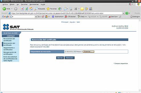 Nota: No olvide seleccionar la opción “Solicitud de Renovación” para obtener el archivo con extensión *.Ren - 3. Ingrese al servicio de Renovación de certificados en la página Web del SAT.